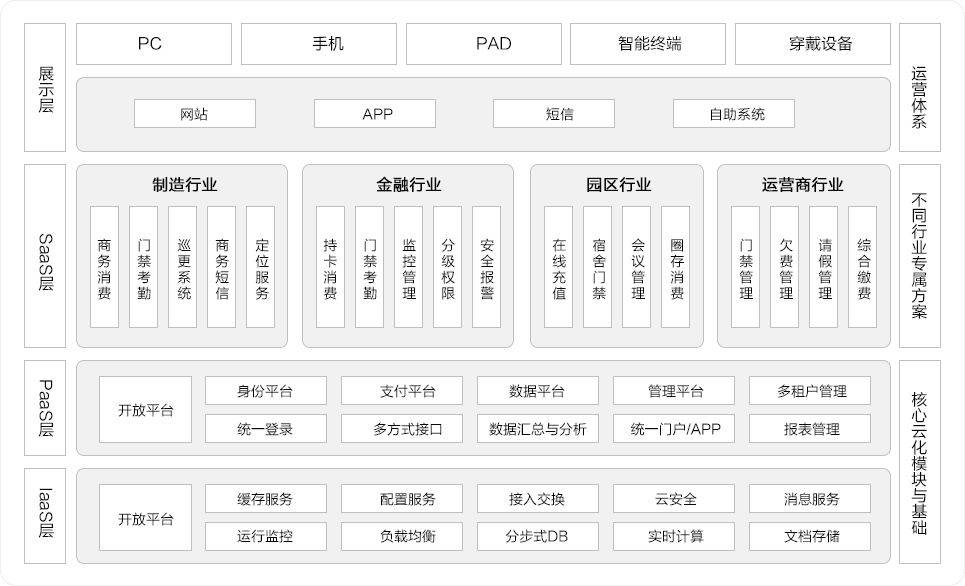 新中新作为智能一卡通市场的领导者,针对政企市场推出了云一卡通服务,为众多政企客户提供集中管理和服务的综合性管理平台。通过云端集中部署、集中维护、集中监控的SaaS架构,提供满足多家政企用户日常消费、考勤、门禁、会议、停车场等业务需求的企业级云应用,覆盖以政府机关、通信业、金融业、制造业、园区、医院等为代表的全部行业,并与企业内OA,HR,考勤和门禁等系统打通,以低成本投入、高效率运作的方式,全面提高企业的管理效率,实现企业管理的信息化、智慧化、安全化。