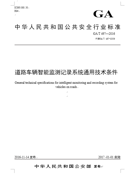 2017年1月1日,公安部交通管理科学研究所根据中国智能交通行业技术发展情况,正式实施《道路车辆智能监测记录系统通用技术条件》(GA/T 497—2009),即道路安全卡口抓拍的新标准。