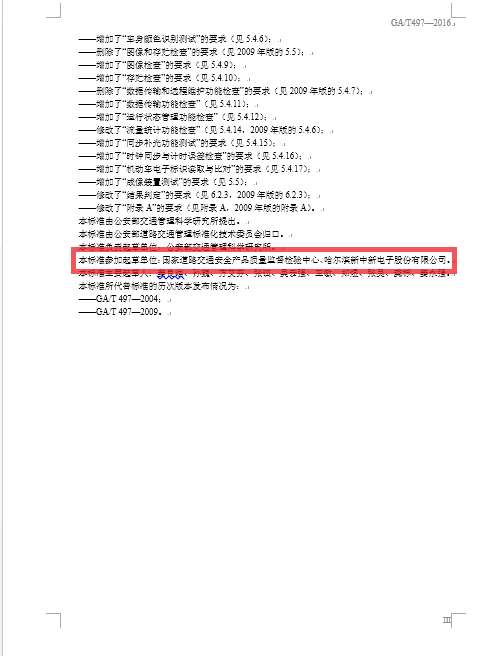 哈尔滨新中新电子股份有限公司是唯一一家参与起草《道路车辆智能监测记录系统通用技术条件》的企业。这是智能交通行业重要的标准之一,此标准发布后,将再次巩固我公司在中国智能交通领域的重要地位,对智能交通业务的发展提供强有力地支撑。