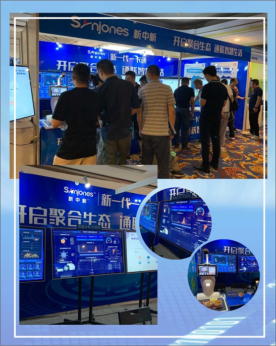新中新展位上展示了“金龙飞天平台群“的两大后台和十大中台软件模块,两大后台包括多介质身份核验平台和虚拟卡账户交易平台,两大后台通过多个中台,为智慧校园的各类应用系统提供多种介质、灵活调用的身份检验服务与金融级账户的联机在线交易服务。