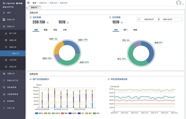 - 数据分析平台-开始了校园生活数据资产的构建和积累,从数据可视化开始,提供消费数据分析、食堂营业分析等价值输出。