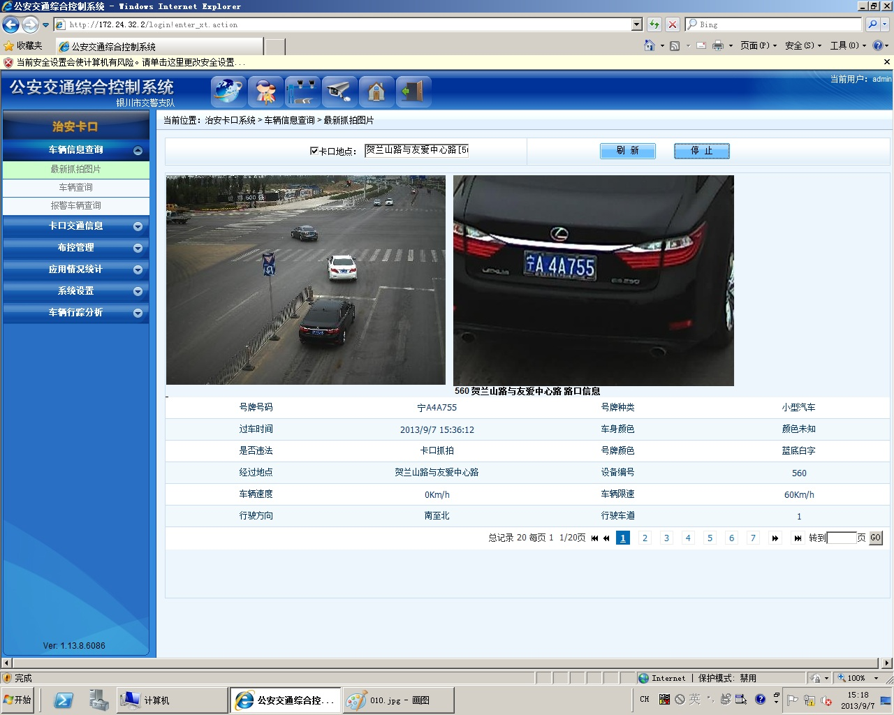 In May 2013, first phase of smart traffic project in Yinchuan city was started. The e-police system adopts integrated capture unit of 5 million pixels, the most advanced unit in the industry, which integrates video detection, automatic capture, and high-definition video surveillance in one. Its video stream is up to 2592*2048 25 frames/sec. In addition to capture the phenomenon of running red light, it also can detect and capture automatically the illegal behavior of not following the guide lane, going in a direction not allowed by traffic regulations, driving on the yellow line, driving on the white line, running through the forbidden areas and others.
