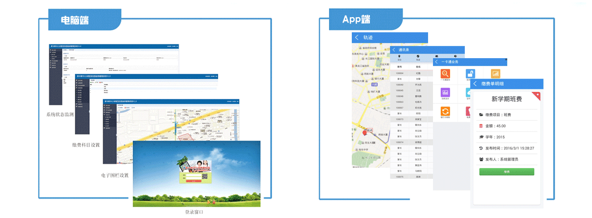 “Middle and primary school smart campus information management system” is a set of basic education information system solution, which integrates the students’ safety, campus security, family-school interaction, campus finance and campus card in all.