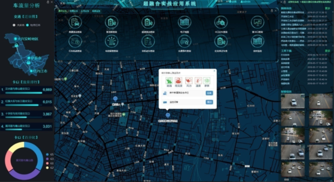 后端管理平台包括超融合实战应用平台及配套的云存储设备。平台可接入电子围栏设备、卡口设备、事件检测设备、交通气象监测设备、车流量采集设备、交通信息显示设备等,提供数据接入、数据存储、数据分析、视频设备接入、视频流转发、视频分析、大数据计算、数据研判、视频监控、数据查询统计、系统管理、车辆分析研判、事件检测报警等服务。